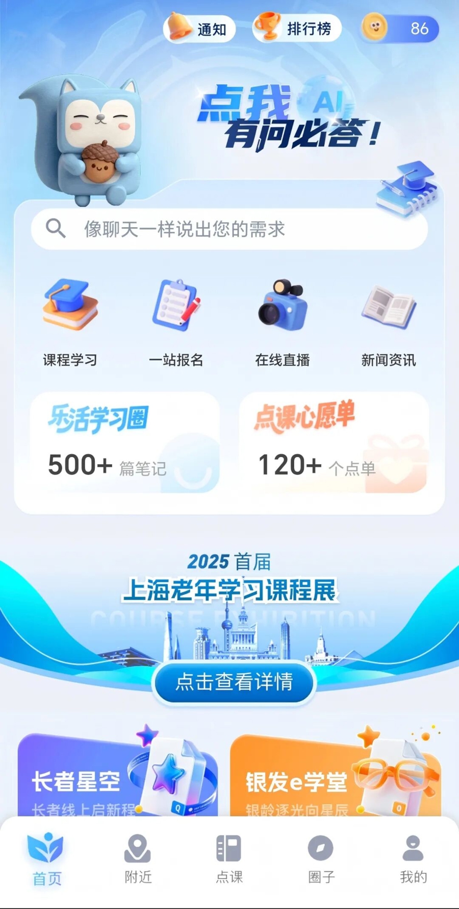 平台广泛整合优质学习资源,覆盖“科普、健康、科技、文化、艺术、生活、运动”等10类一级资源类目、45个二级类目、8000余个学习资源,实现了“AI助学、课程学习、学习地图、点课许愿、学习圈、一站报名、积分兑换”等七大特色功能,并联通上海市终身教育学分银行。学习者可一键查询学习成果档案,累积学习积分兑换学习权益,权益池涵盖文化消费类、生活服务类、实践体验类、学习提升类四大核心板块,着力满足学习者的不同需求。