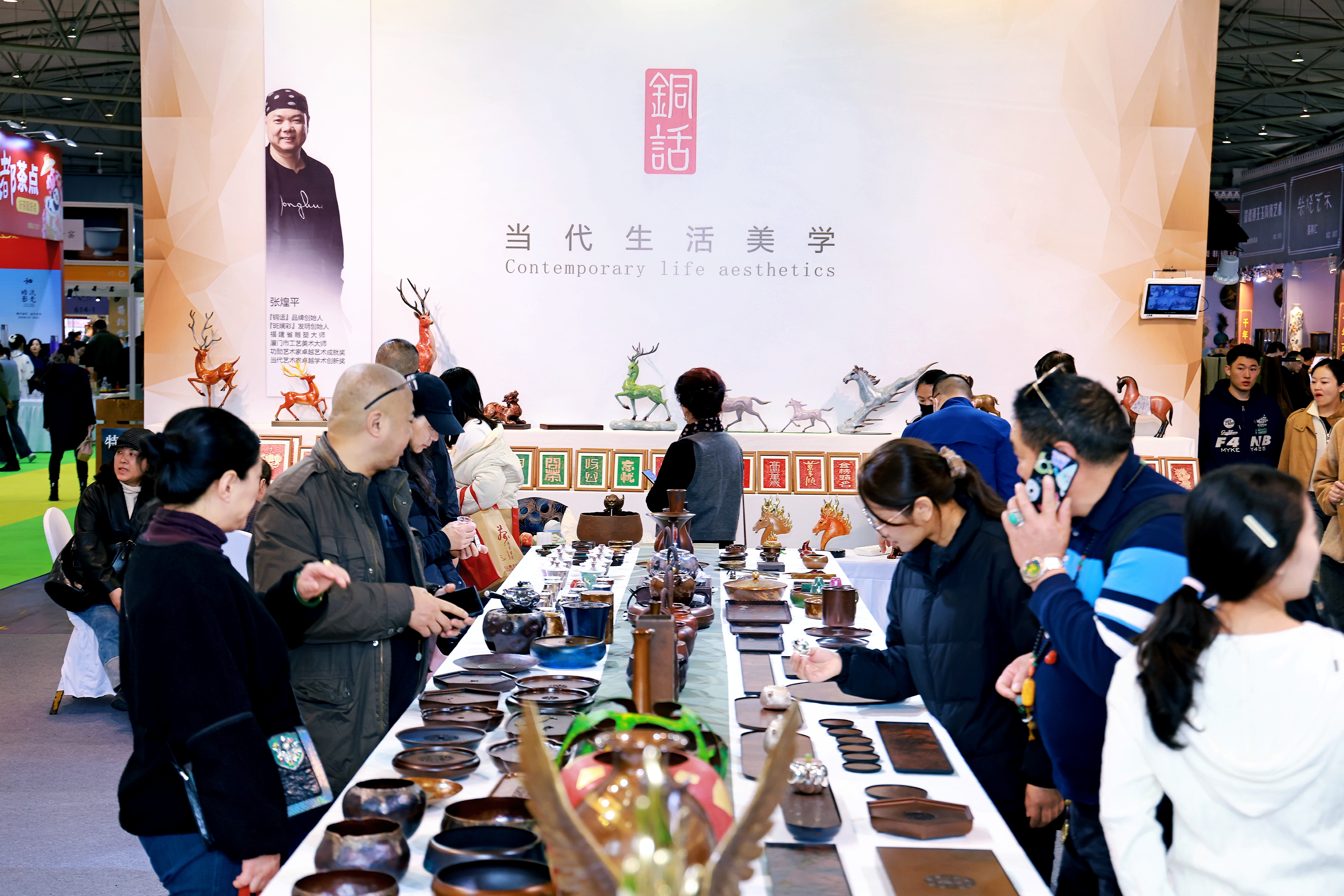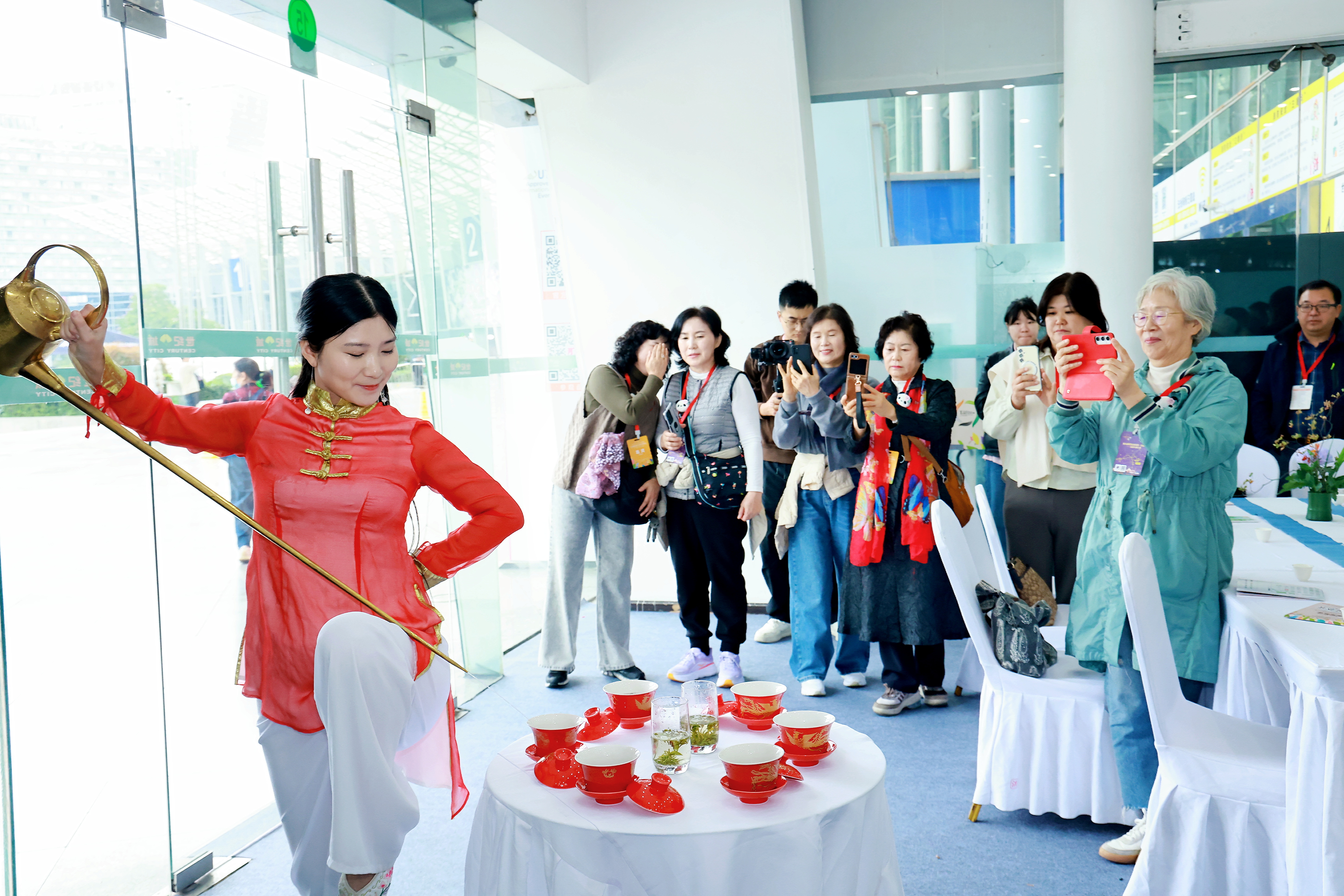全产业链数字化绿色化展示:设置全国名茶、茶器美学等主题展馆及国际红茶、茉莉花茶、新茶饮、跨界醇香咖啡等特色展区。展品覆盖种植、加工、包装到终端消费全链条,涵盖传统六大茶类、百年古树茶等核心品类,以及智能泡茶机、环保包装、茶旅线路等创新产品。通过人机斗茶、AI机器人互动等科技体验,有效吸引年轻观众参与,推动茶文化传播向年轻化、科技化转型。“茶+”跨界融合赋能生活美学:同期举办国际乐器展、紫砂陶瓷茶具美学器物展,打造“茶+音乐+美学”沉浸式场景。邀请四川交响乐团、非遗民乐代表性传承人举办12场“琴茶一味”主题展演,融合川剧胡琴、古琴与茶艺展示,吸引超1000名年轻观众互动体验。紫砂陶瓷展区汇聚景德镇陶瓷、宜兴紫砂、龙泉青瓷等名窑名瓷,300余位工艺大师作品集结亮相,并开展非遗技艺直播教学,带动茶具交易显著增长。同时,推出“茶+露营”“茶+书店”“茶+文创”等跨界场景,推动茶文化融入现代生活,拓展产业消费新空间。